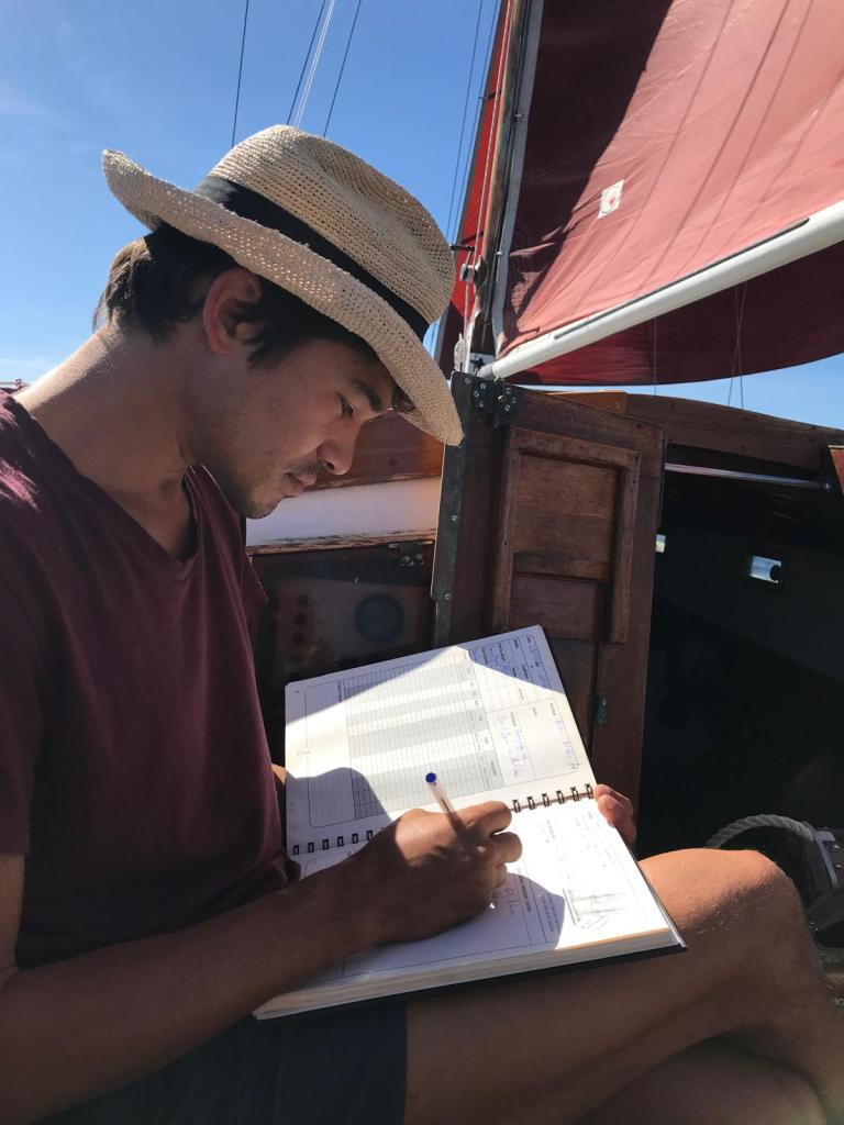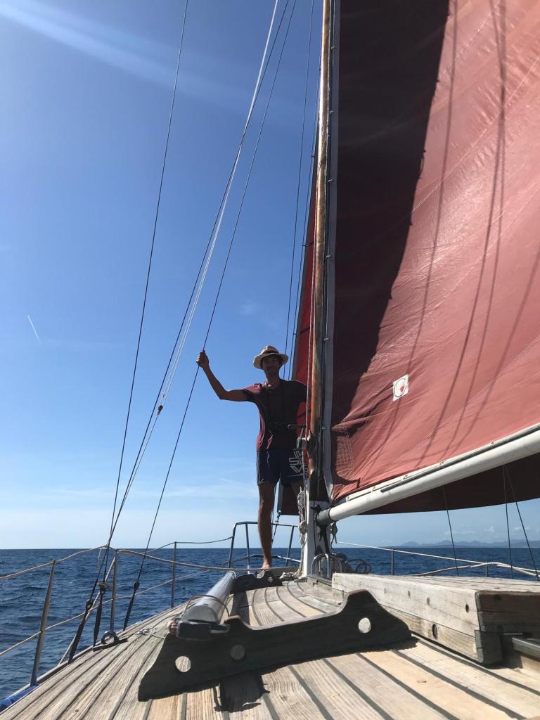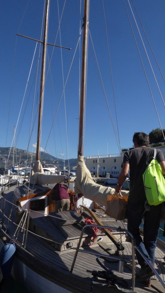 Embarquement du premier passager!Solide petit déjeuner avant le départ!Quasiment prêt à partir au port de départ (Saint-Jean Cap Ferrat)Toutes voiles dehorsRemplir le journal de bordLe bateau bien réglé, l’effort devient minimalOn profite du paysage et de l’air marin