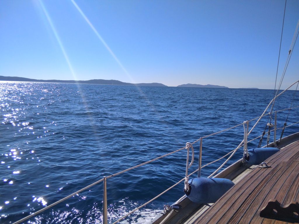 On décide de pousser jusqu’à Porquerolles mais un fort vent de face et des réserves d’essence en baisse nous poussent à changer nos plans. Finalement on s’arrête à Bormes les mimosas pour la nuit et on reprendra demain 🙂