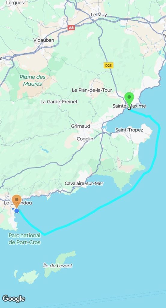 Partis ce matin de bonne heure on dépasse assez rapidement Cavalaire sur mer 🙂