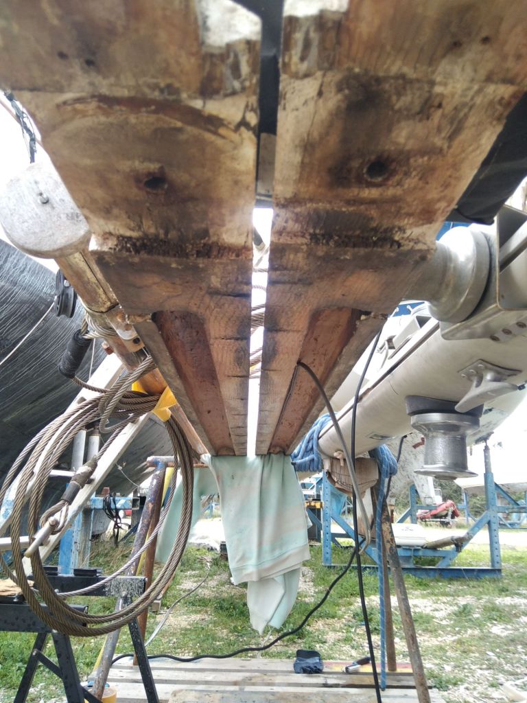 Le fait de l’ouvrir complètement va permettre d’éviter que l’eau ne s’infiltre dans les fissures sans pouvoir ressortir et pourrisse le mat de l’intérieur. Je vais pouvoir le stocker avec le côté vernis (ou ce qu’il en reste) vers le haut en attendant de pouvoir m’en occuper correctement 🙂